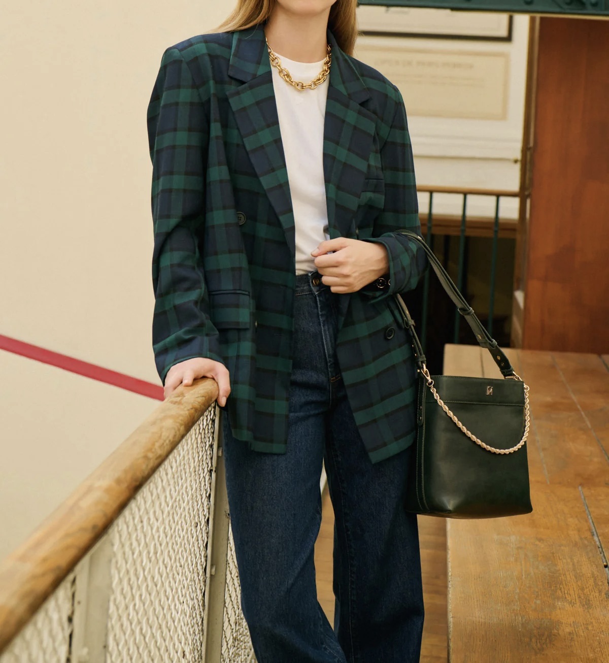 Veste blazer à imprimé carreaux esprit tartan.