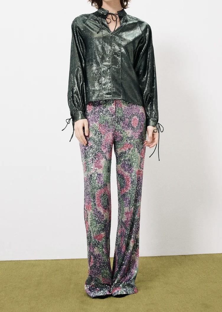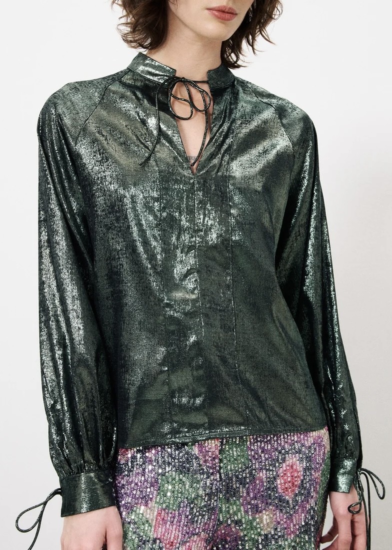 Blouse irisée agrémenté de détails qui apporte tout son chic à cette très belle pièce.