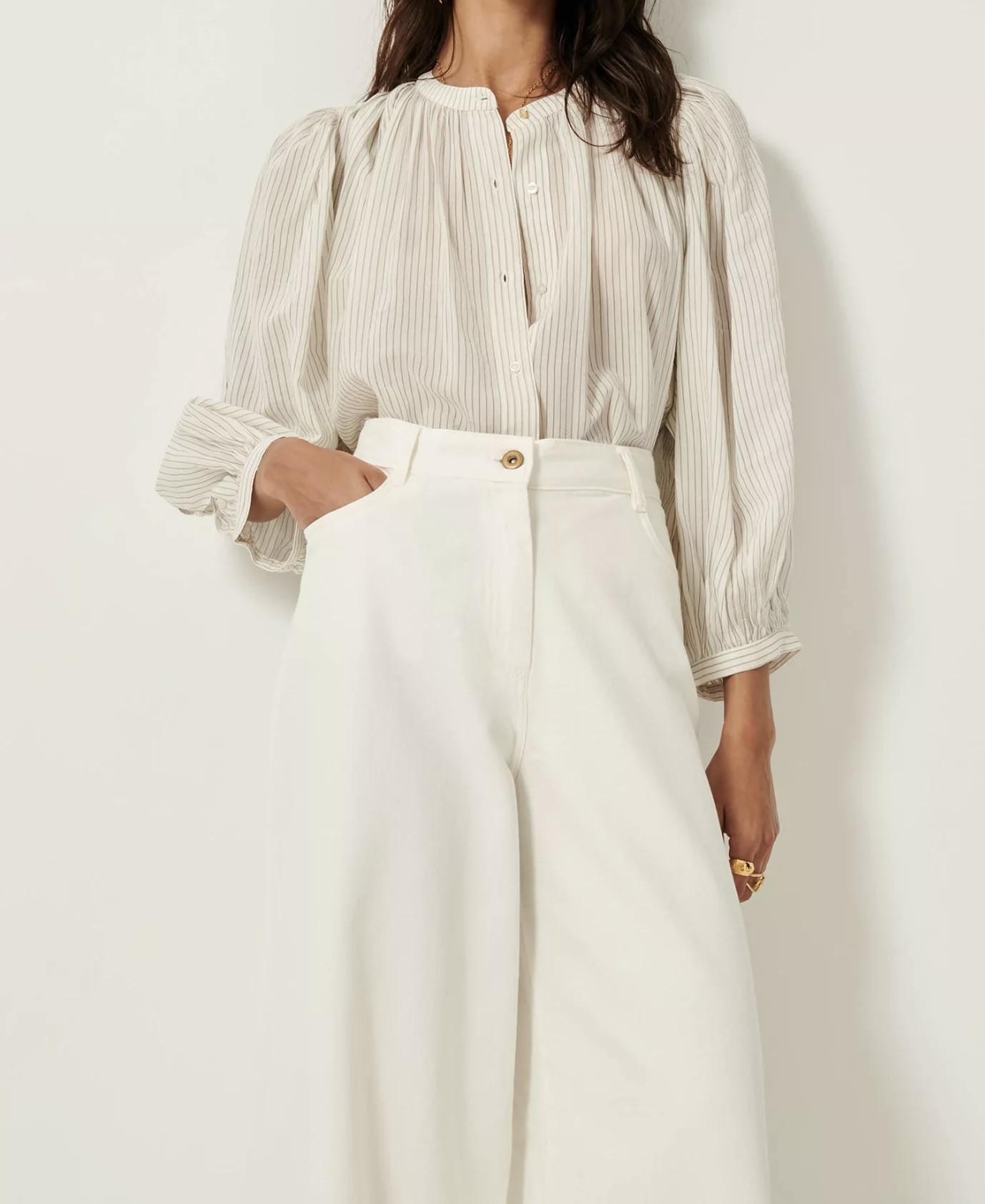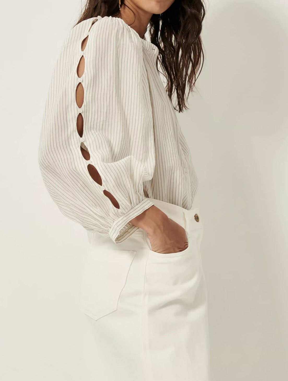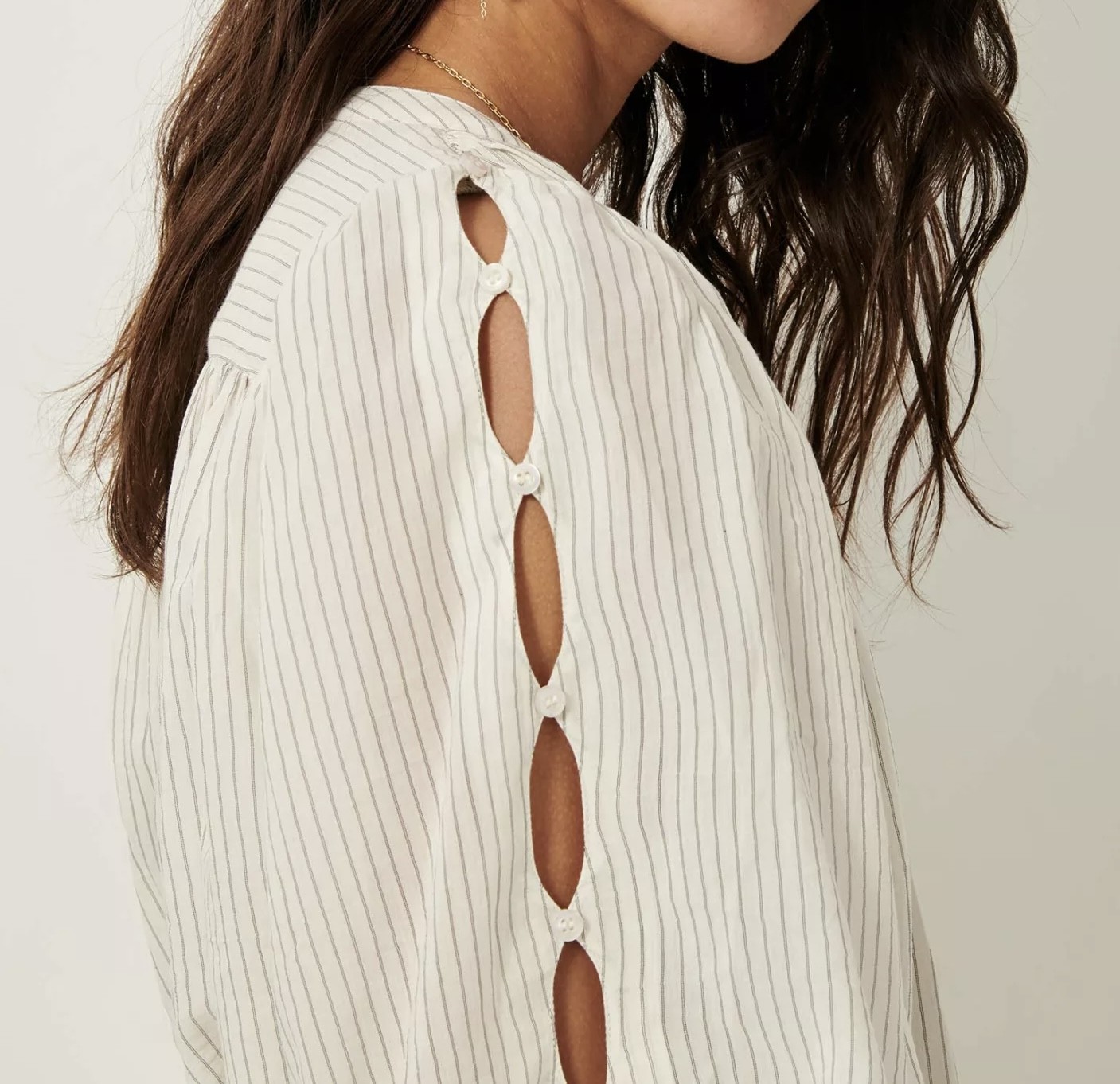 Détails de fronces au dos, aux épaules et en bas de manches.
