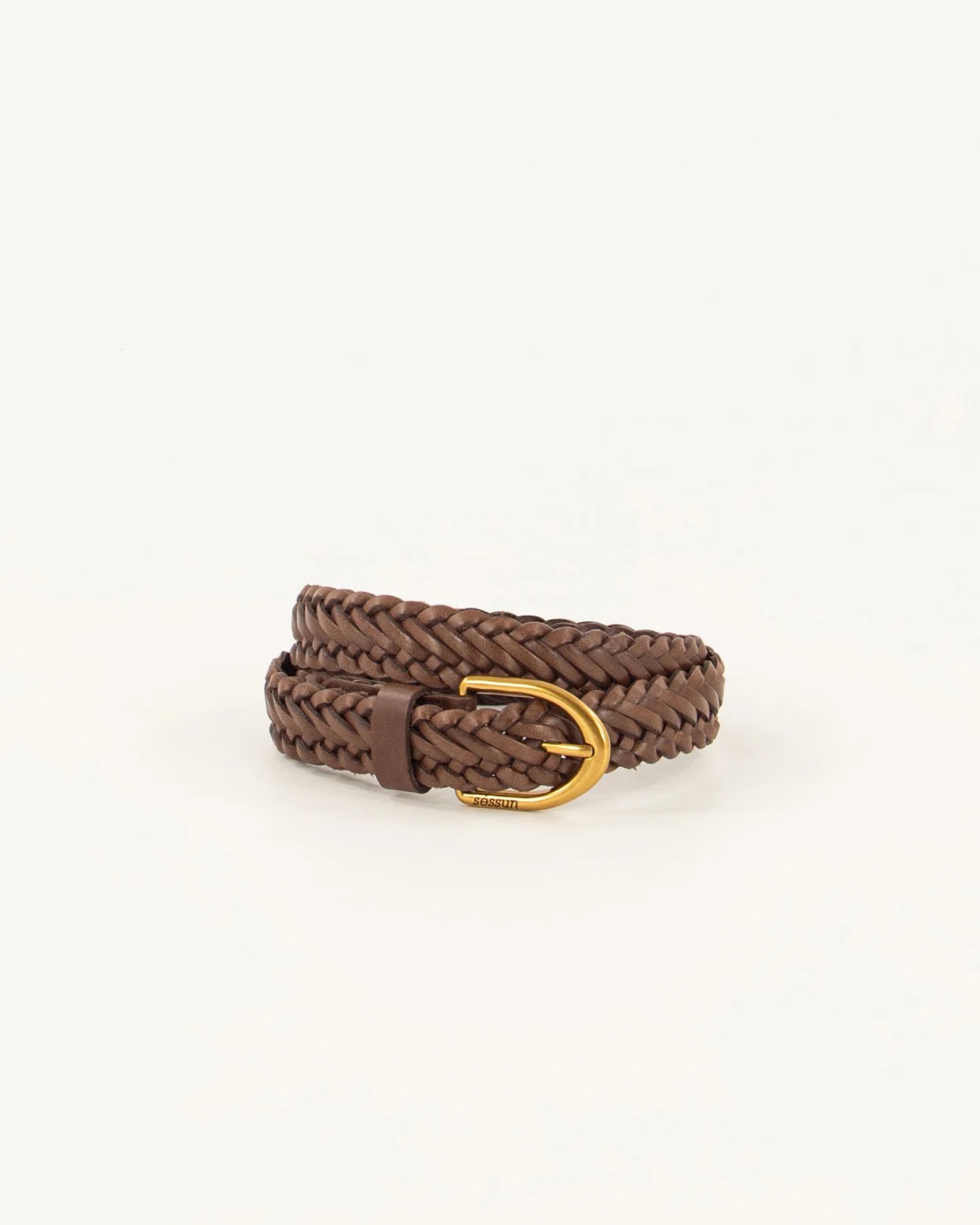 Ceinture en cuir de vache tressée.