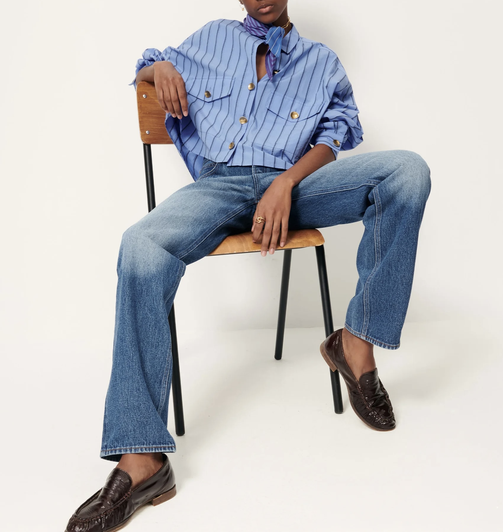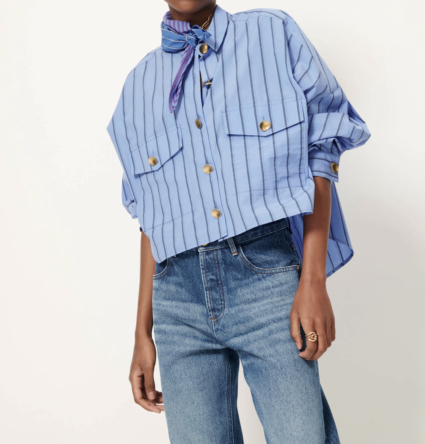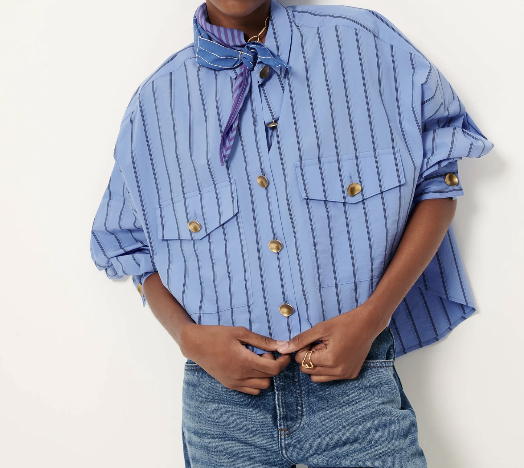 Poches plaquées en popeline craquante à fines rayures contrastées, tissée en Italie, exclusive Sessùn.