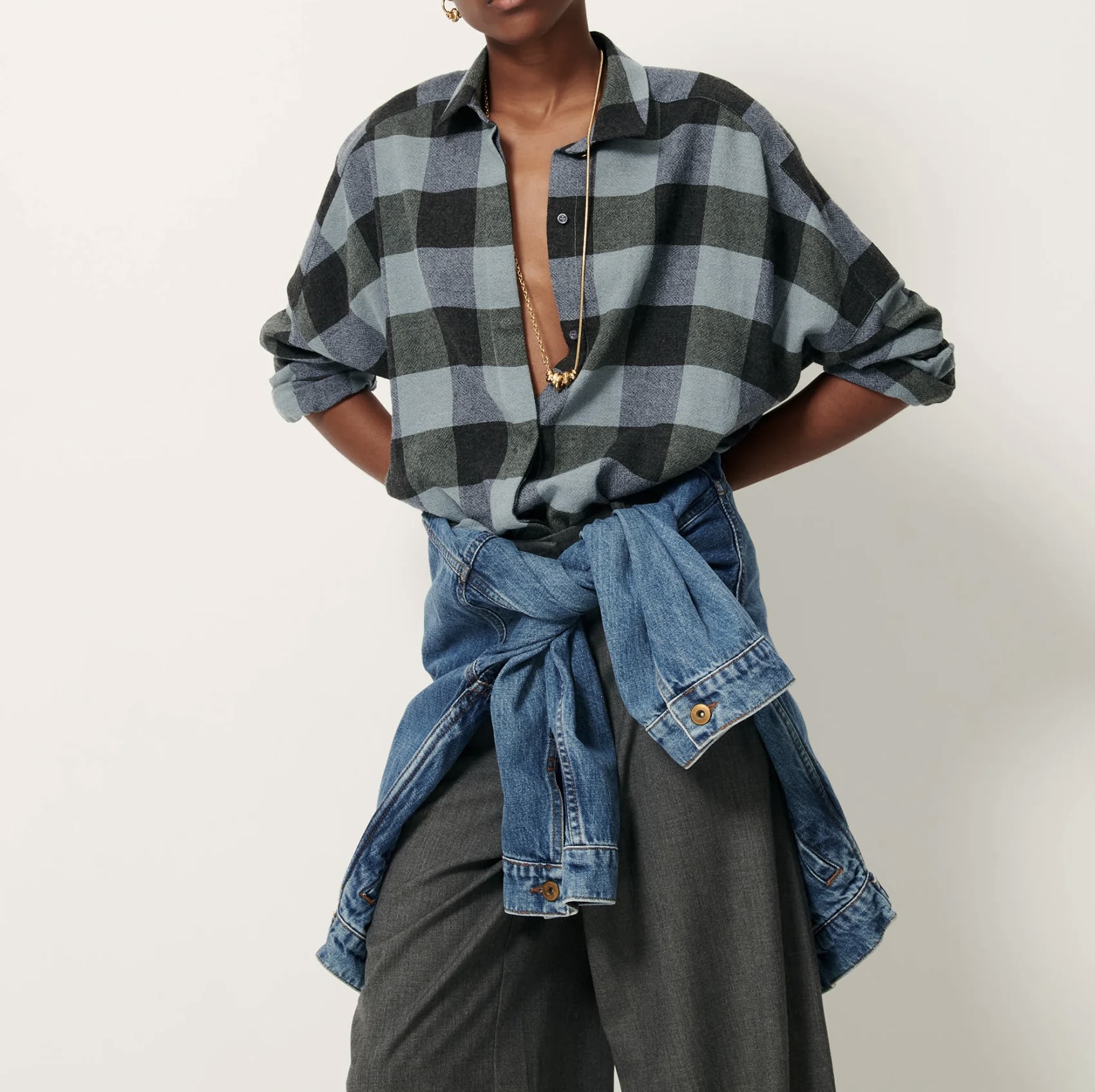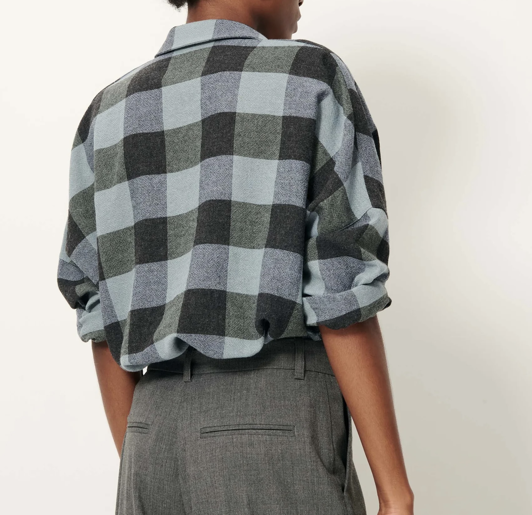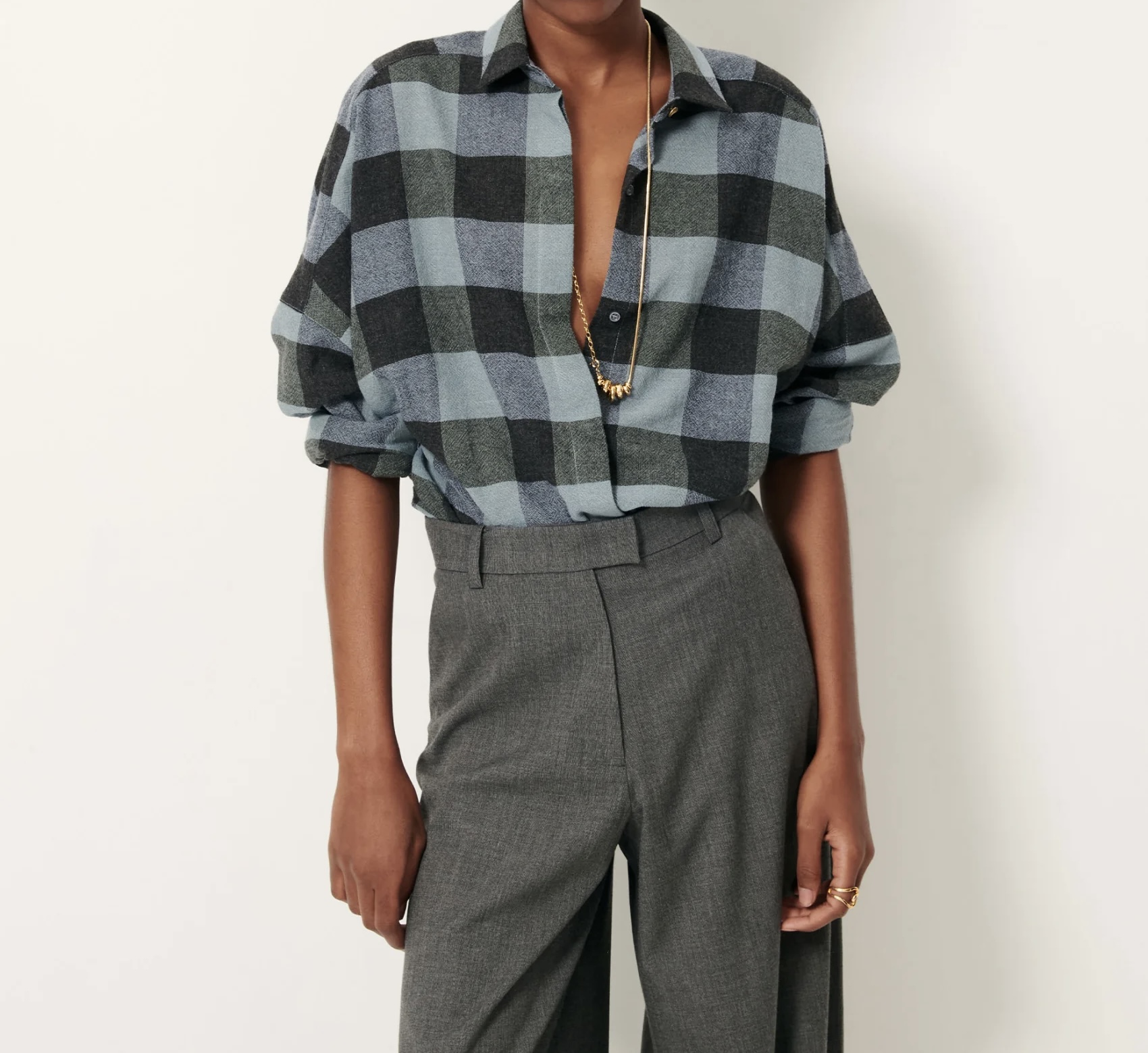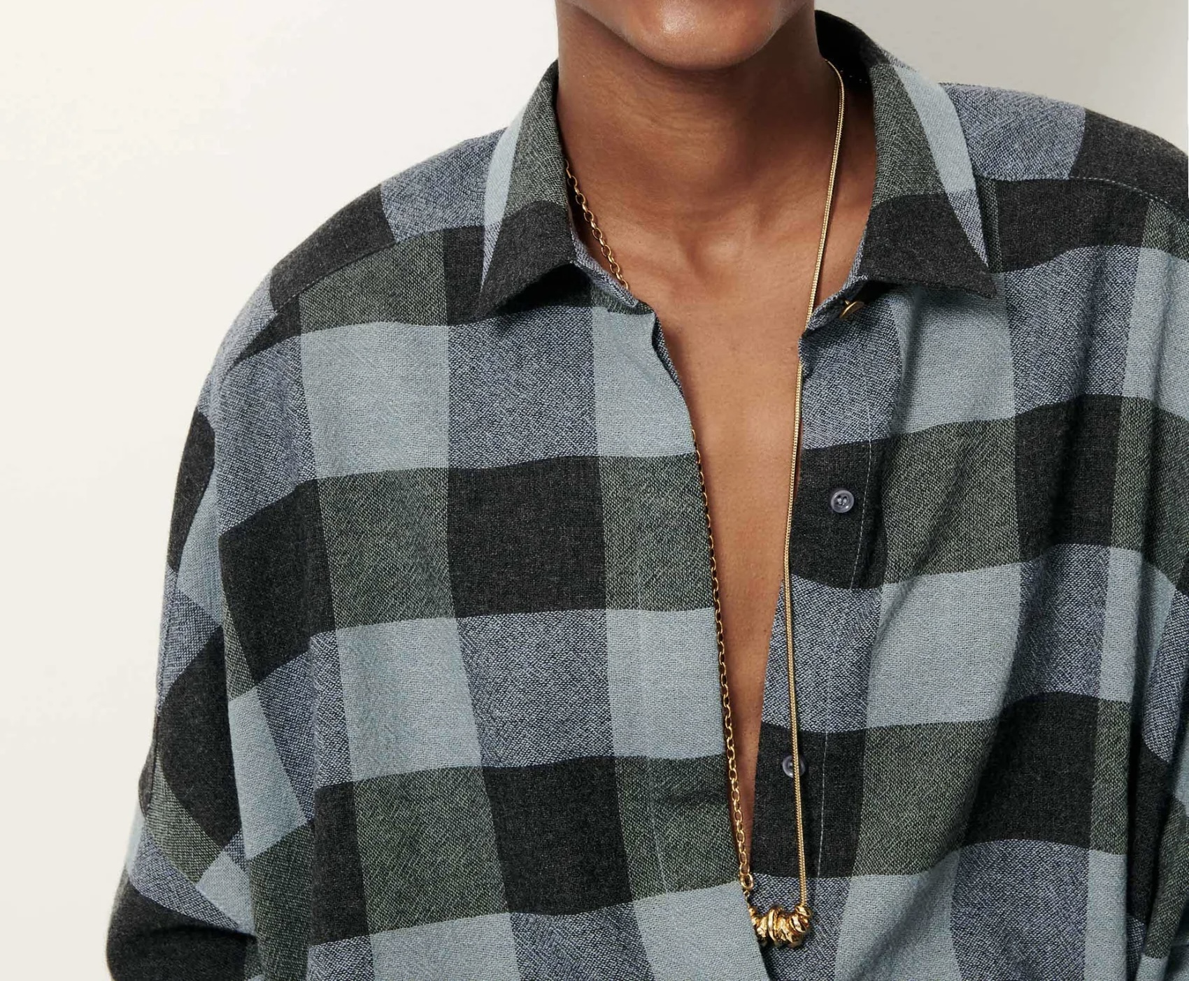 Chemise à emmanchures basses en étamine tartan tissée en Italie, exclusive Sessùn.