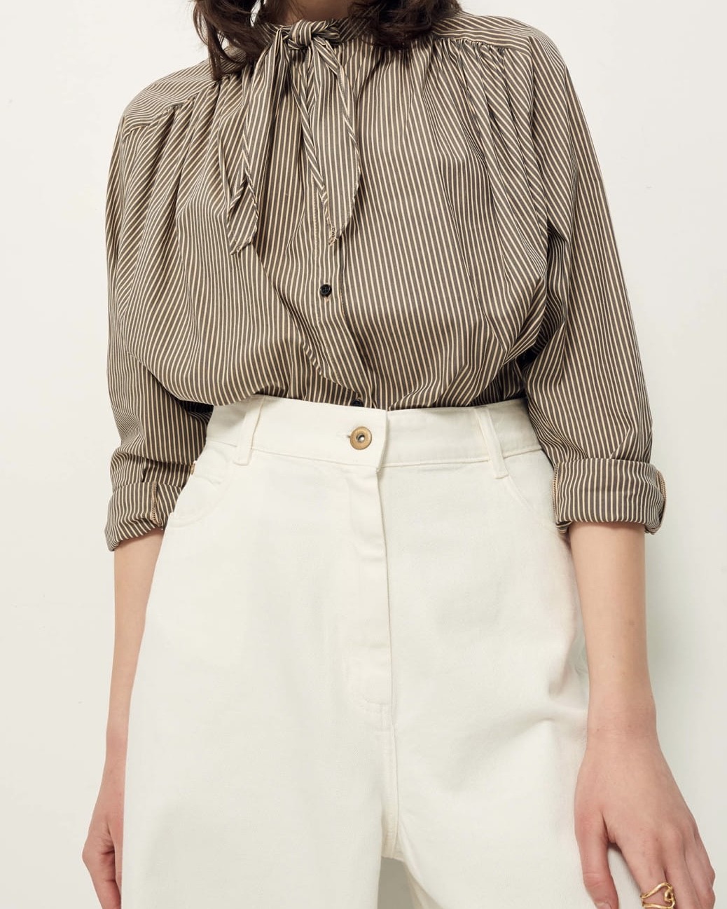 Pan de matière à nouer au col.