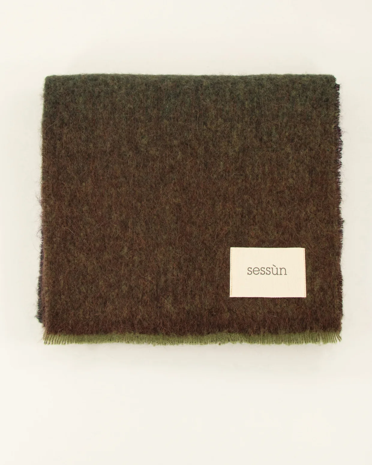 Echarpe à effet dégradé avec bords frangés, tissée en Italie. Etiquette brodée avec logo Sessùn.