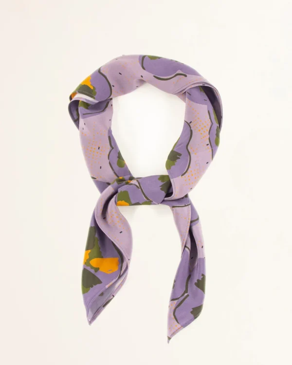 Foulard en satin fluide de viscose, imprimée en Italie.