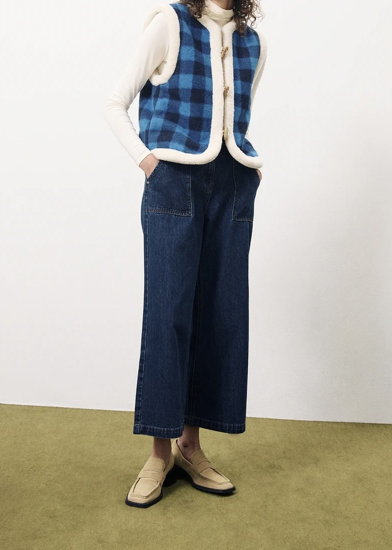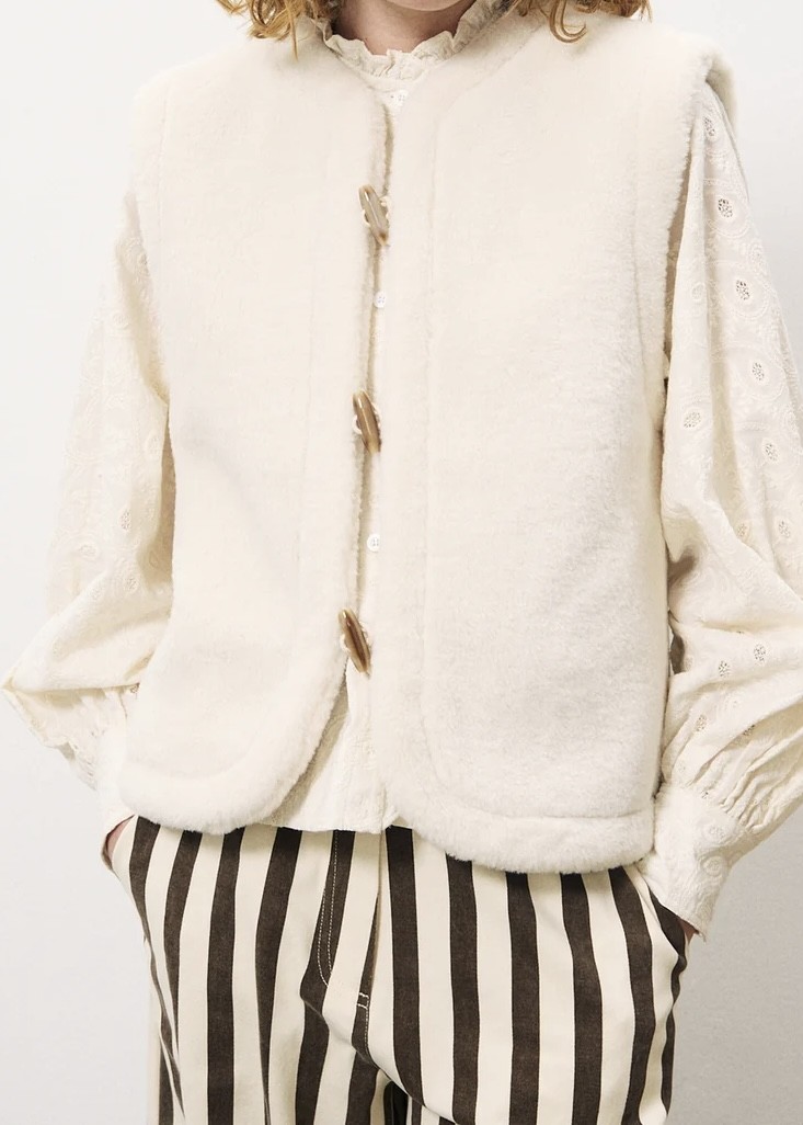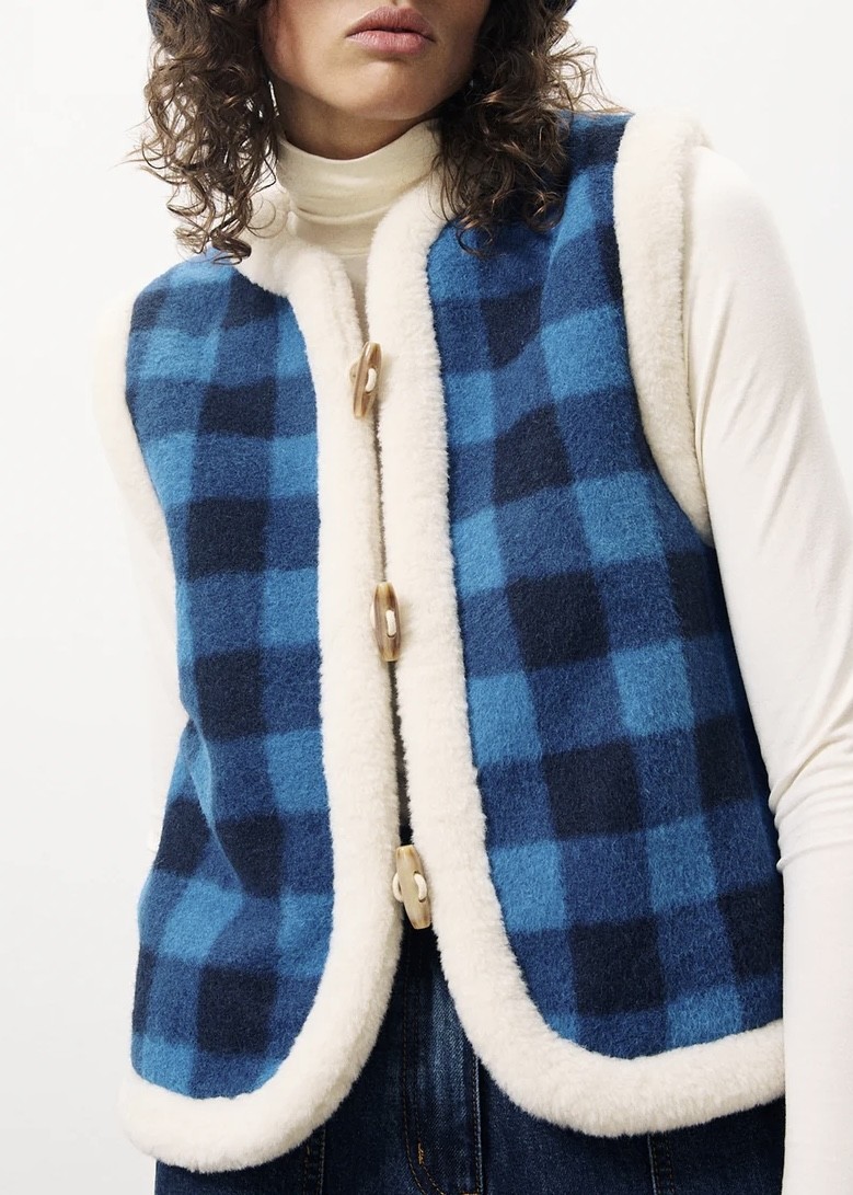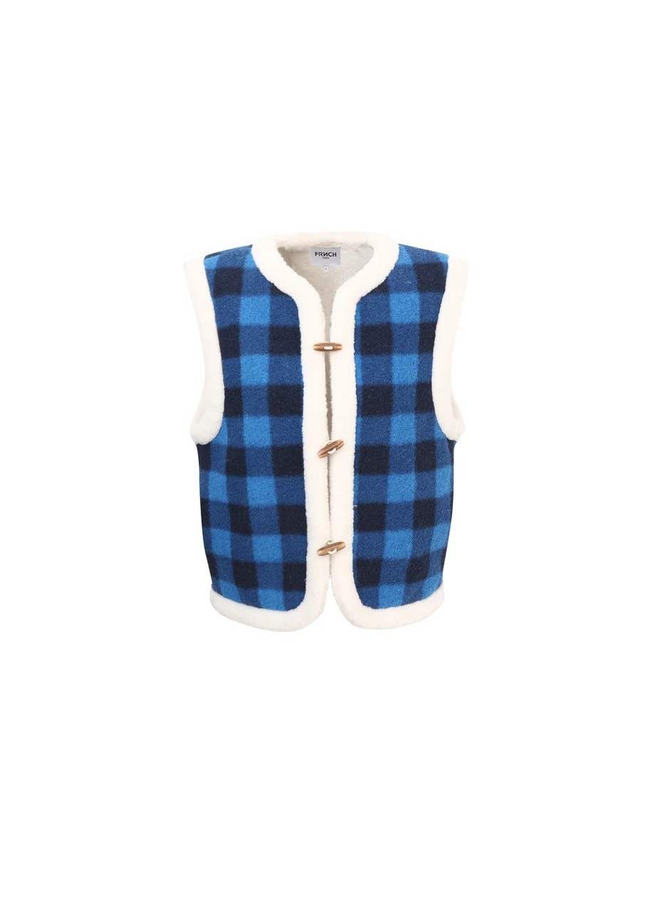 Gilet réversible : un côté carreaux et l'autre fausse-fourrure.