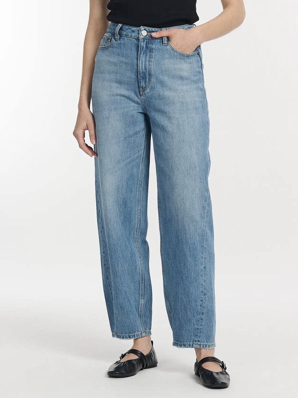 Coupe flottante des hanches jusqu'aux cuisses avec jambes flottantes, s'effilant vers le bas.