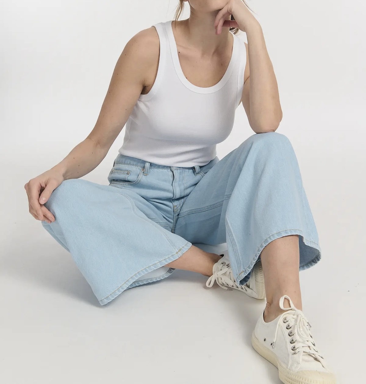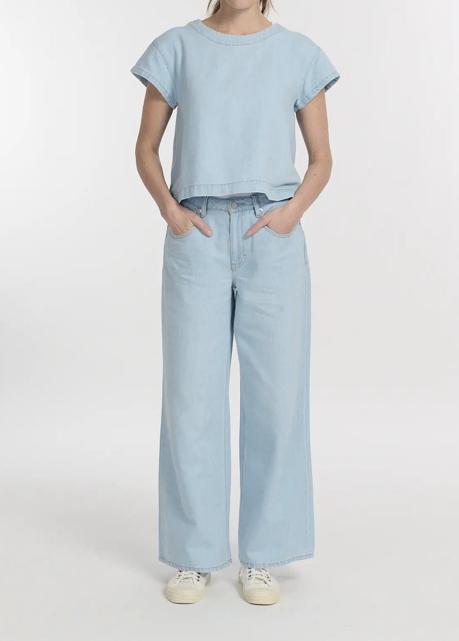 Composition : 52% lyocell (fabriquée à partir de pulpe de bois), 48% coton.