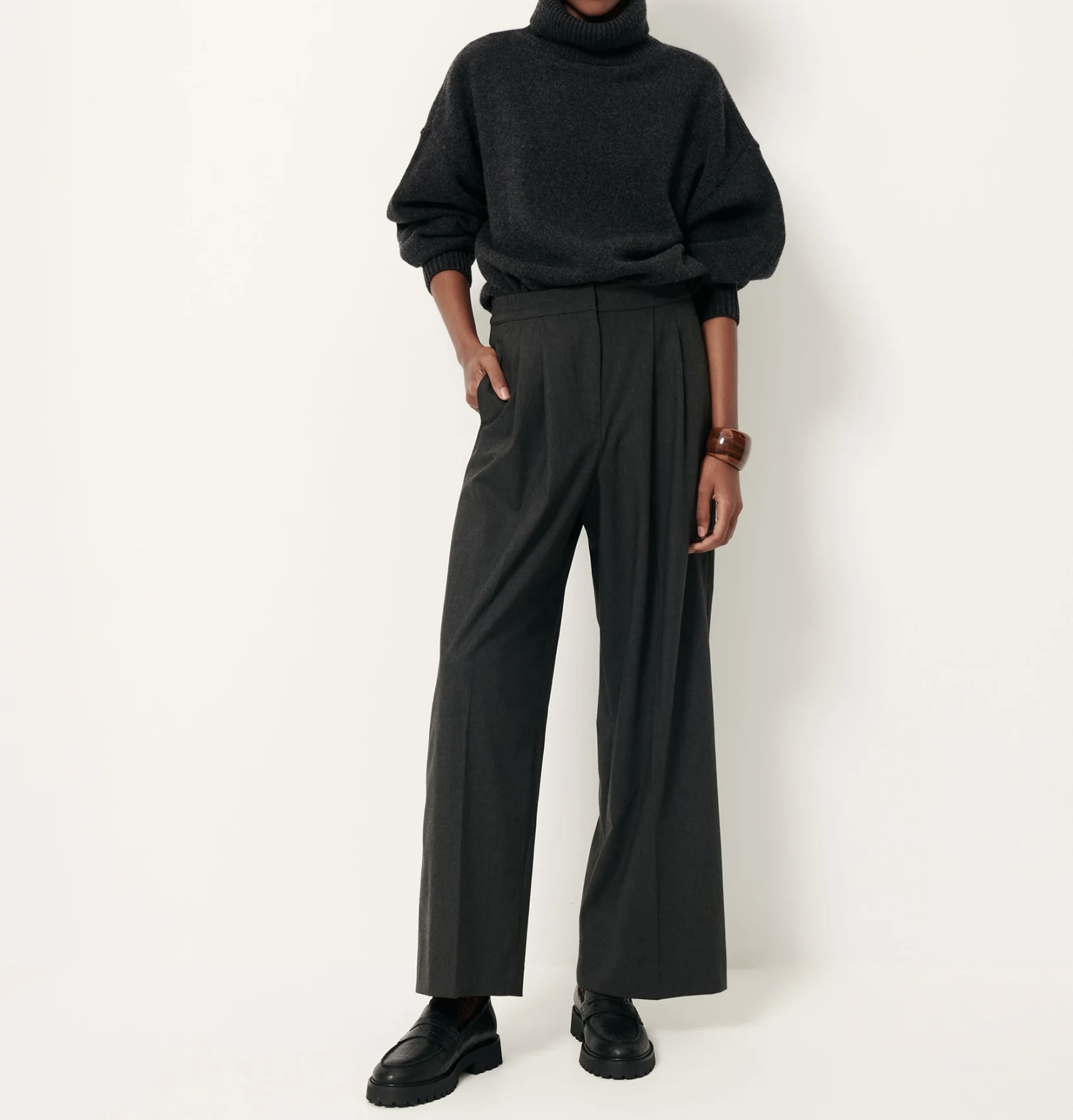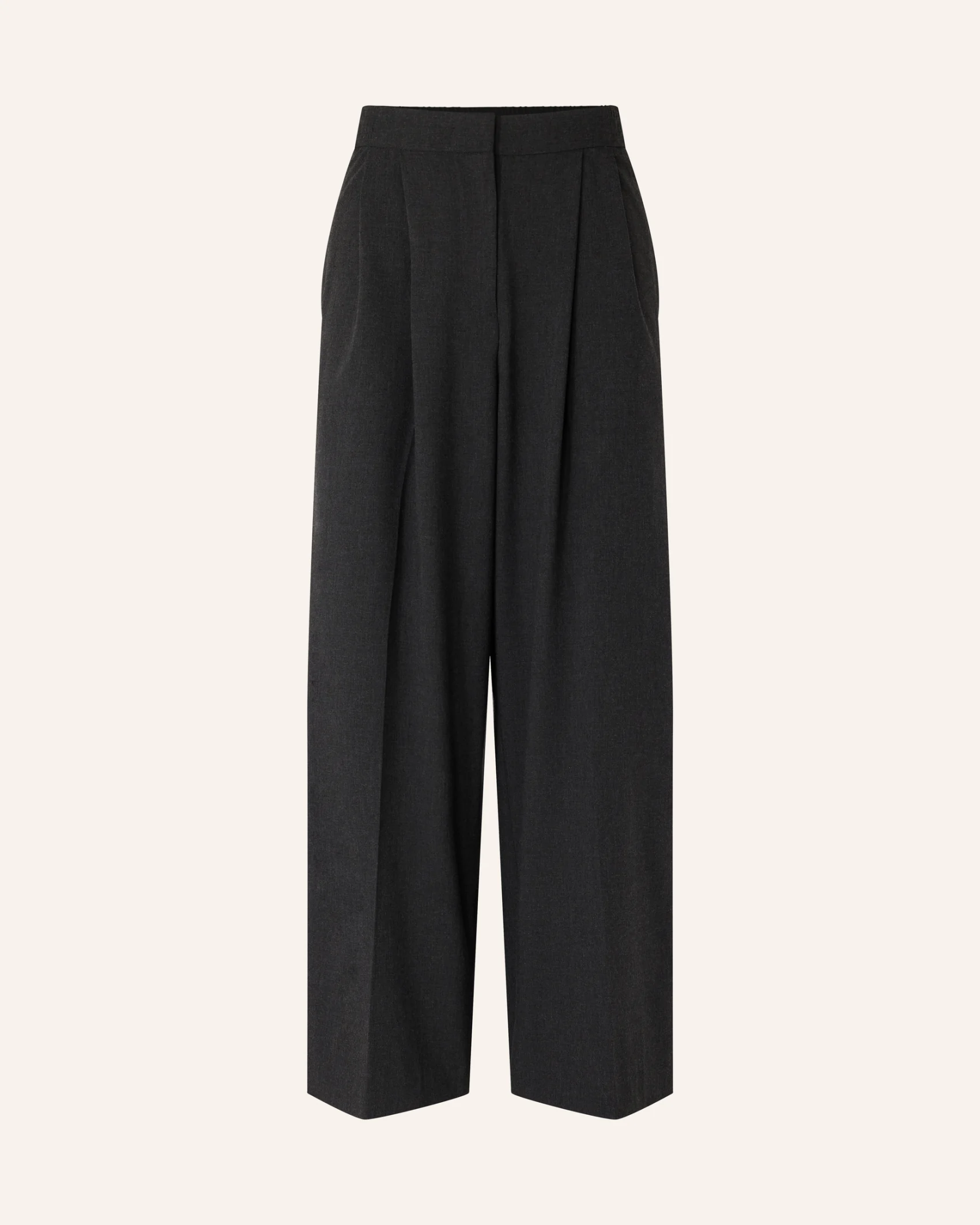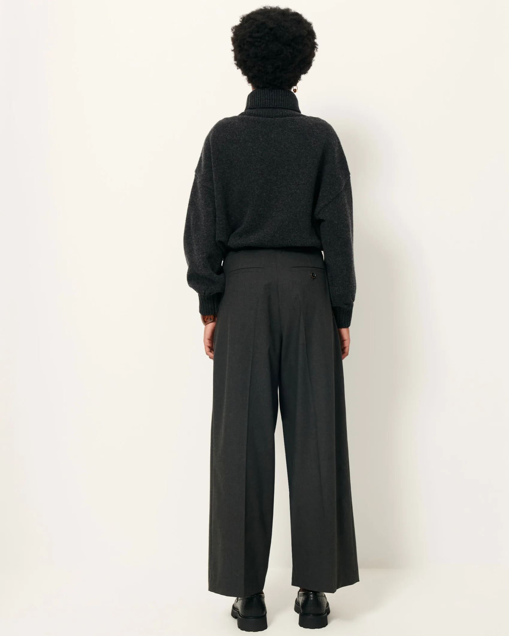 Plis couchés sous la ceinture en toile fluide chambray esprit tailoring avec léger stretch, tissée en Bulgarie.