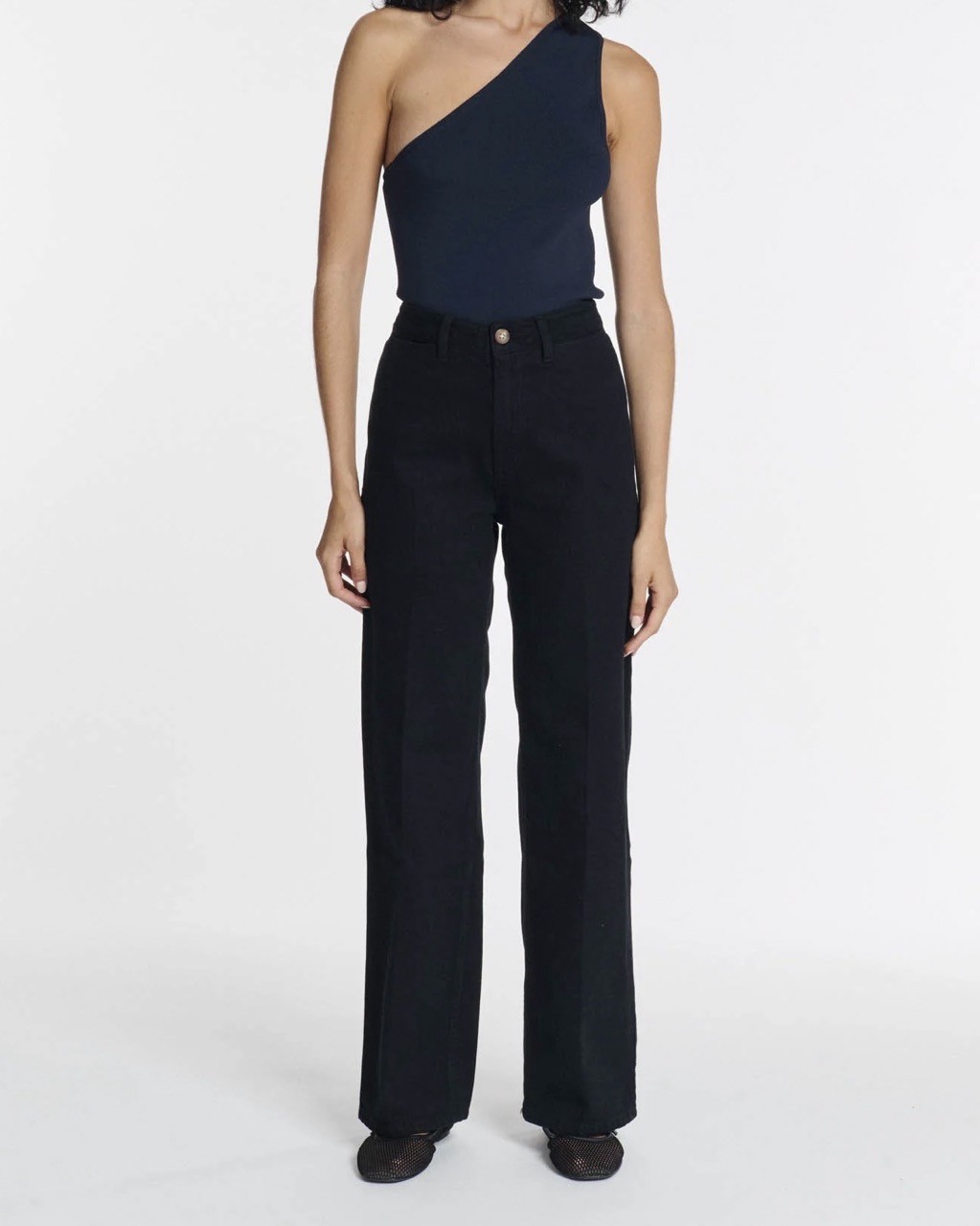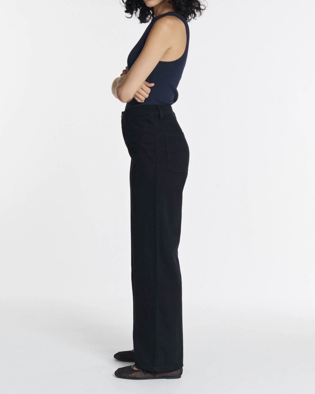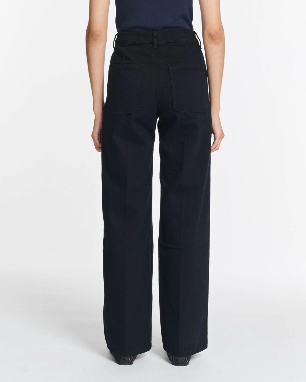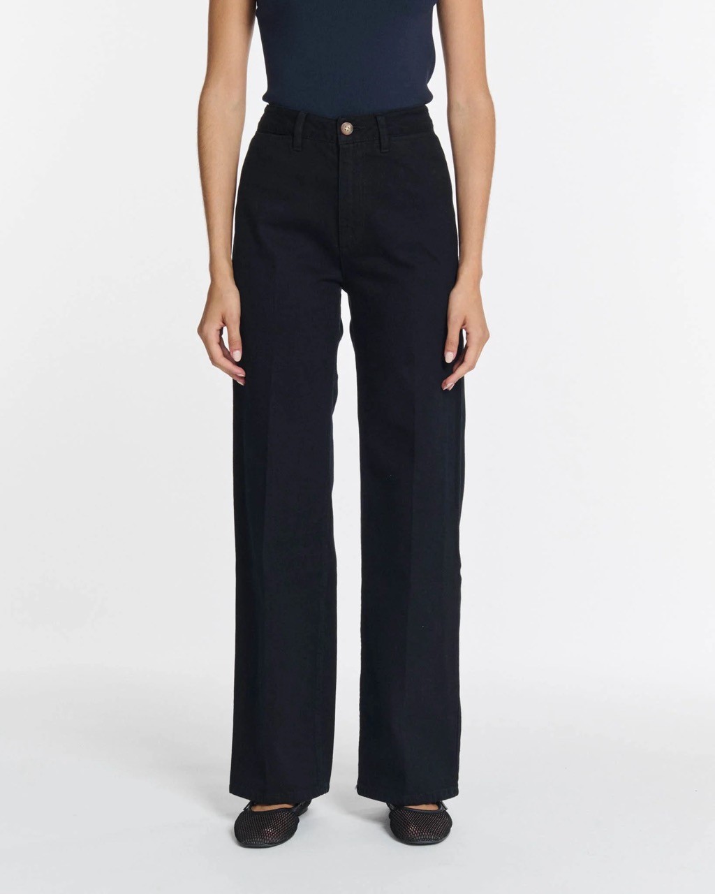 Jeans avec coupe pantalon et toile douce au toucher et fluide.