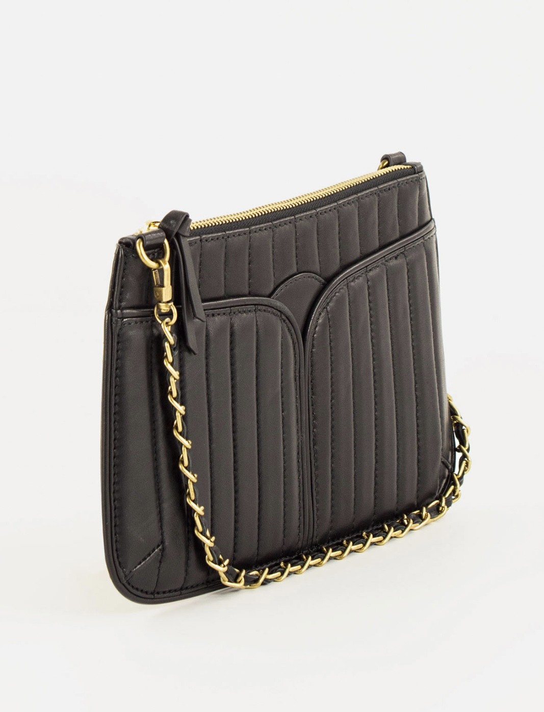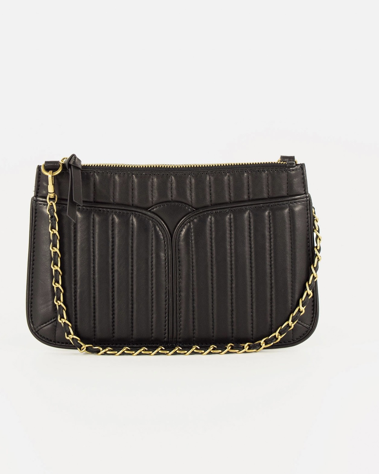 Pochette noire matelassée surpiquée.