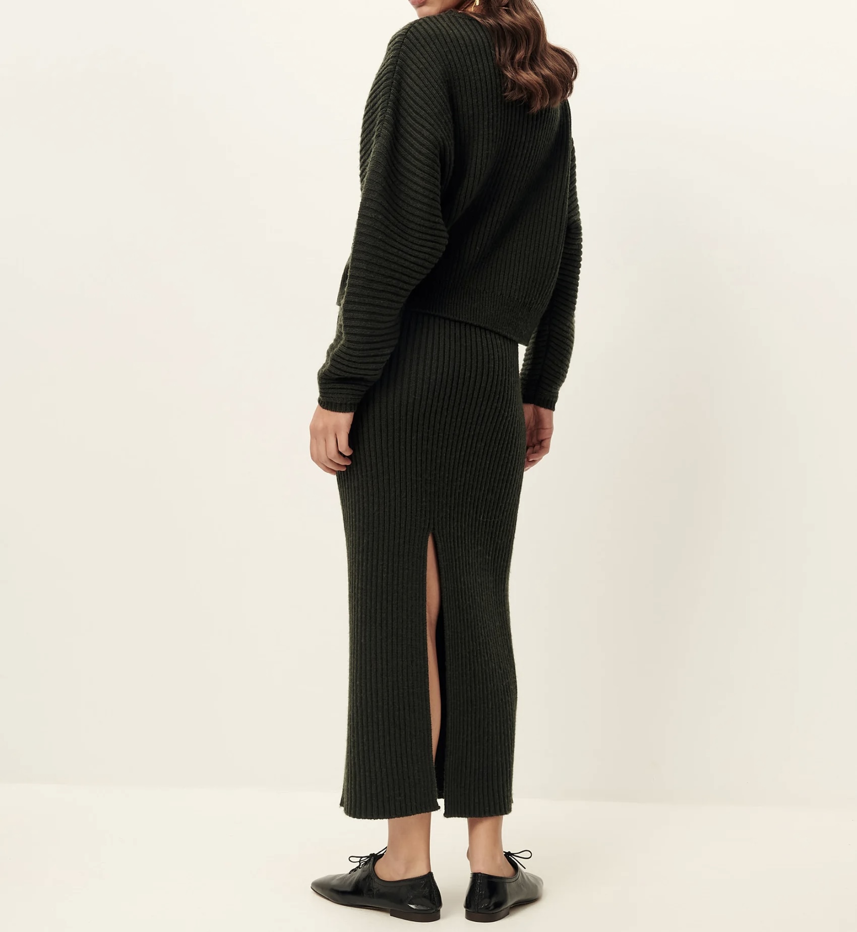 Pull col rond oversize en côtes à manches gonflantes, tricoté en Italie.