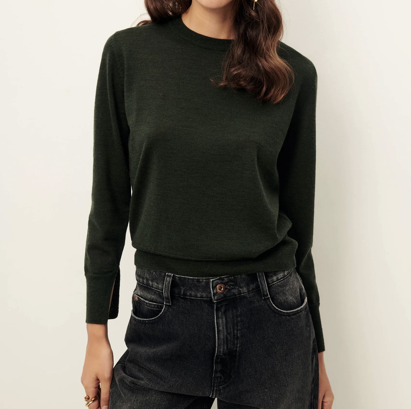 Pull ajusté en maille fine jauge mérinos, point jersey.