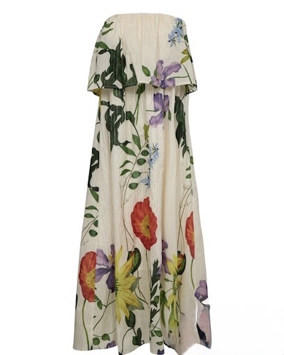 Imprimé floral et fines rayures lurex.