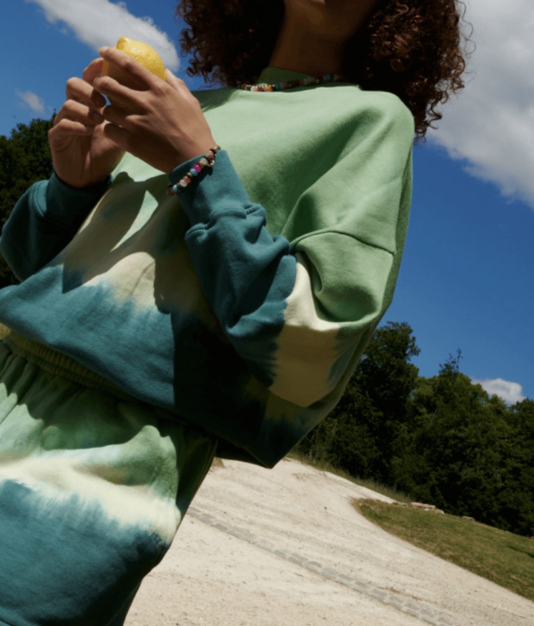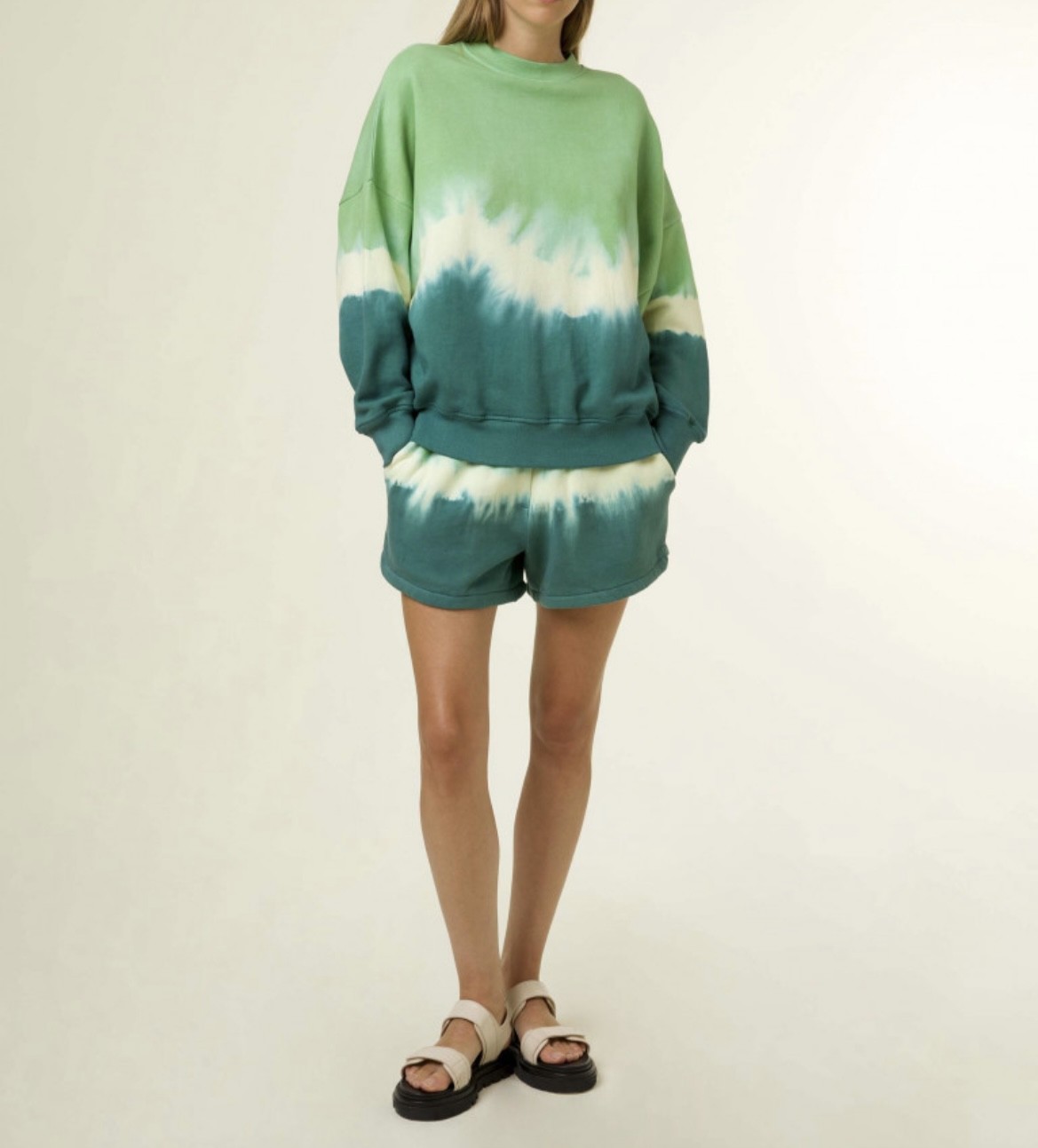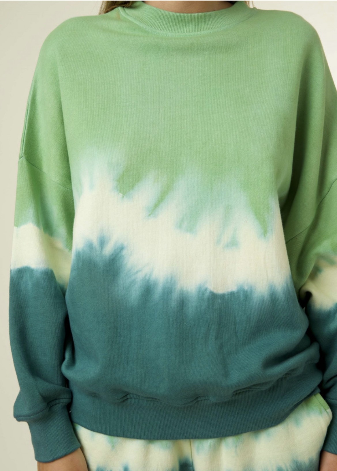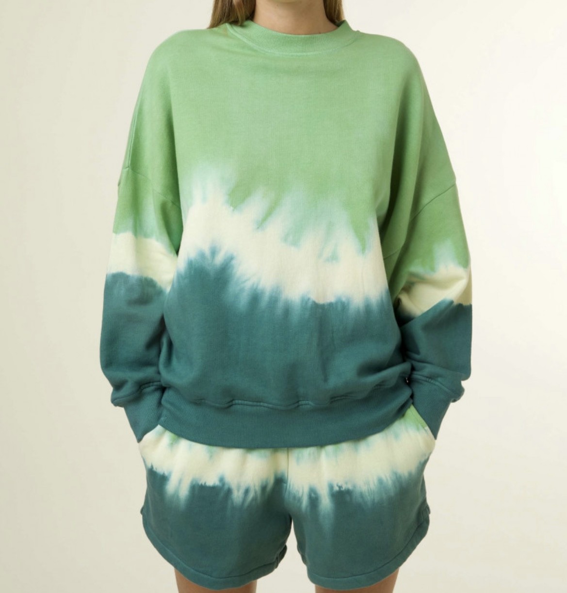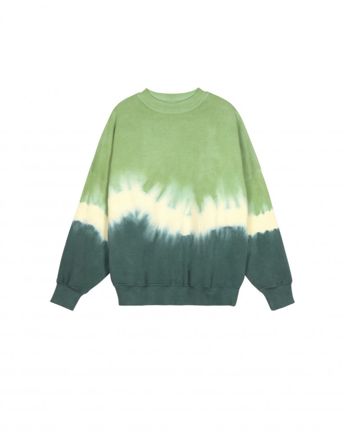 Sweat avec motif tie and dye déclinaisons en vert.