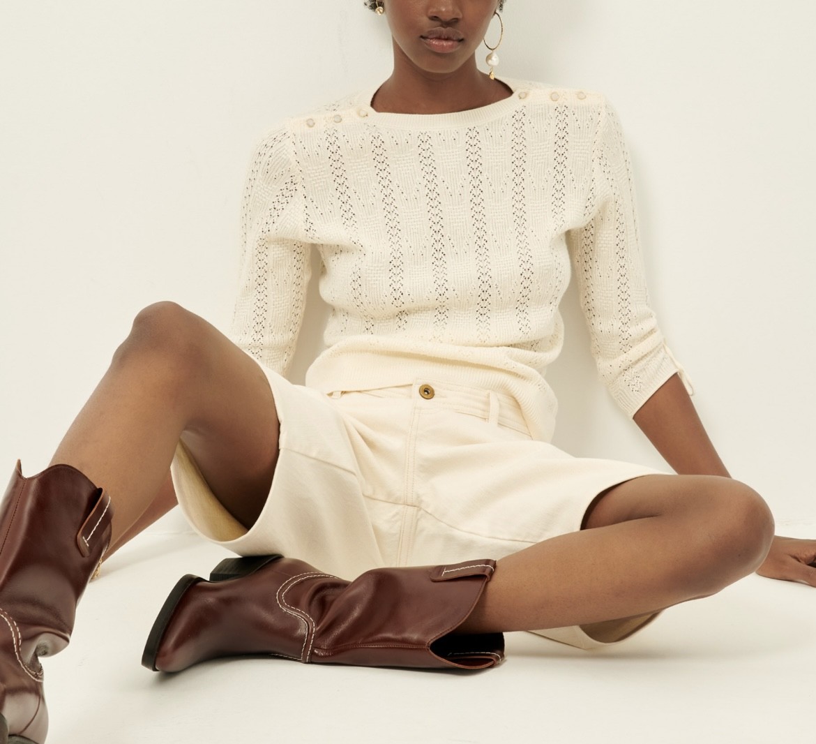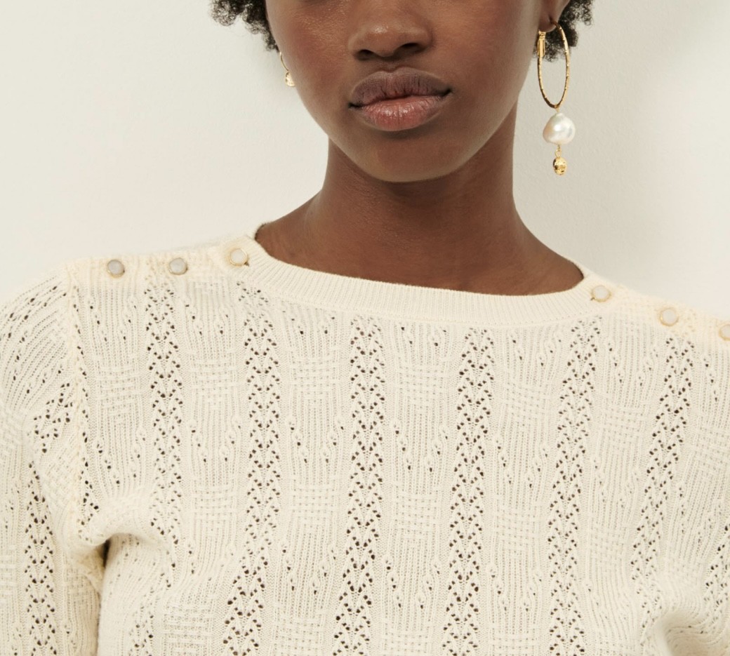 Pull pris du corps en maille fantaisie ajourée