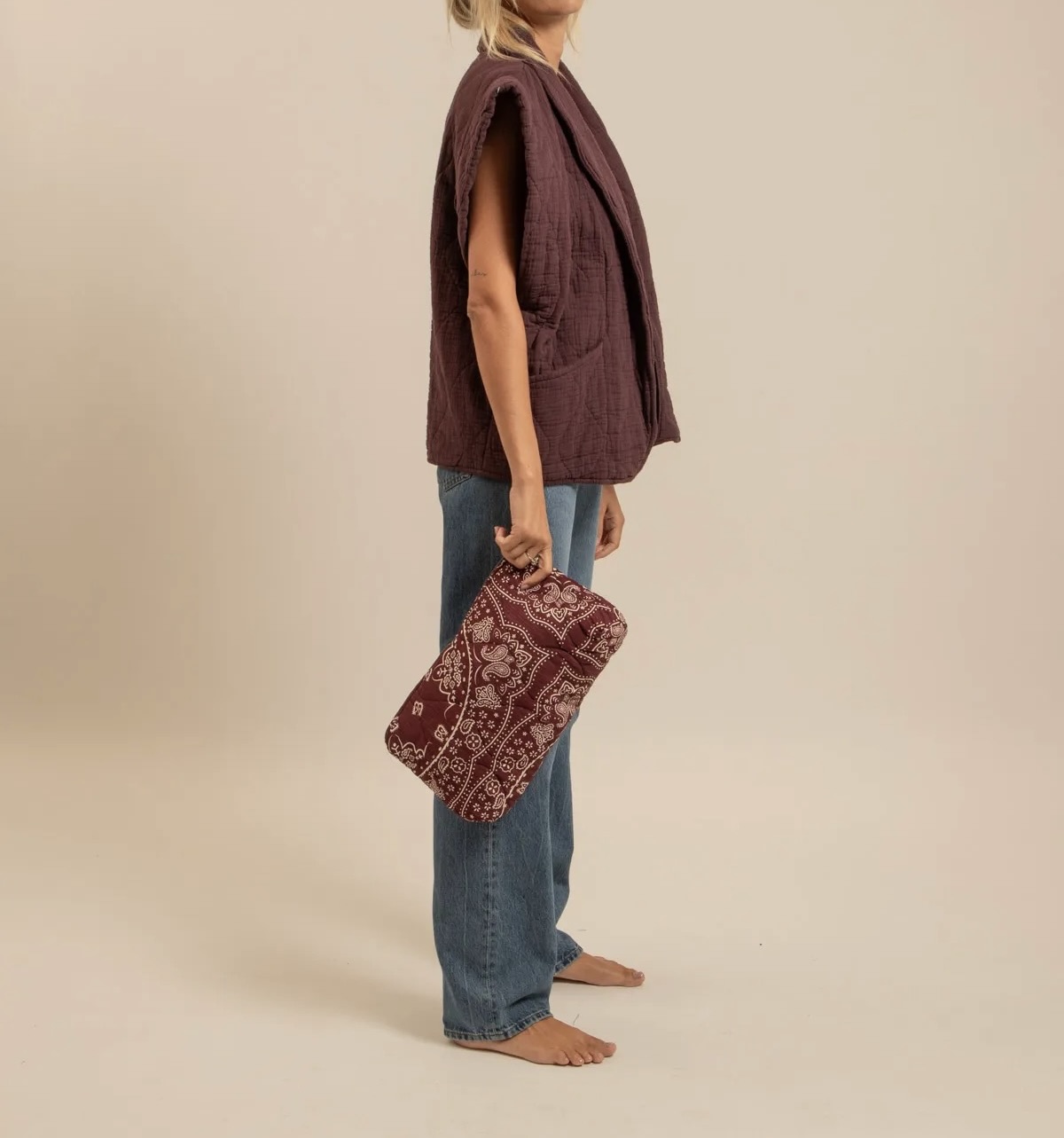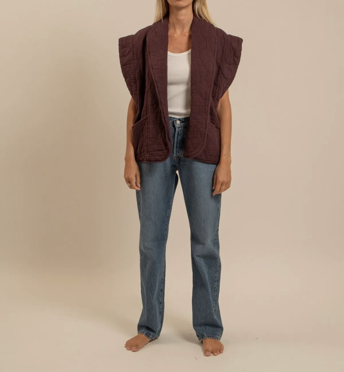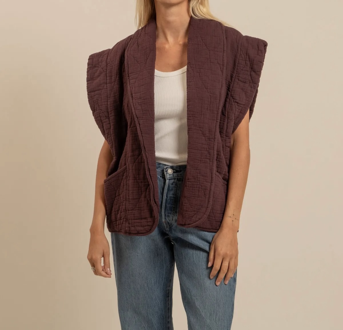Veste Sans manches en gaz de coton matelassé Bordeaux