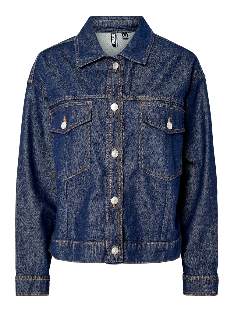 Veste en denim brut surpiqÛres marrons.